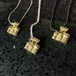 > Available as gold and silver earrings and pendants.