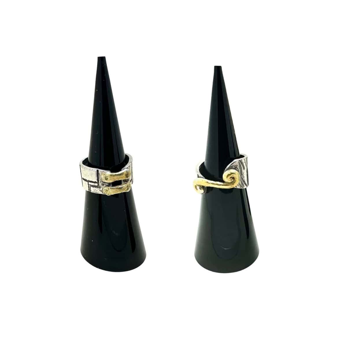 These rings represent some of my earliest experiments in precious metal clay using gold accents. They were both milestone accomplishments at the time, expanding my technique, creativity, and expression. Sculpted by hand, fired into solid fine (.999) silver, and accented with gold overlay, they’re part of my foundational story as a designer—and deeply loved.